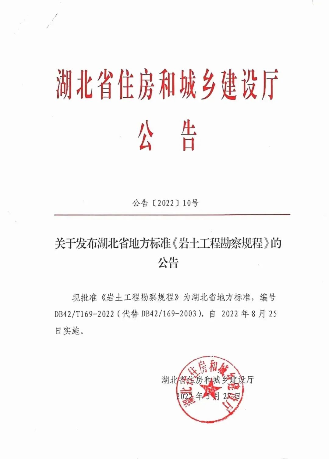 近期,湖北省住房和城鄉(xiāng)建設(shè)廳、湖北省市場監(jiān)督管理局聯(lián)合發(fā)布了《巖土工程勘察規(guī)程》DB42/T 169-2022(以下簡稱《規(guī)程》),并將于2022年8月25日起正式實(shí)施。