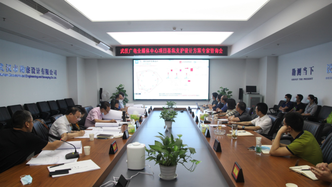 2021年8月,公司中選武漢廣電全媒體中心基坑支護(hù)設(shè)計項目。該項目基坑開挖面積約3.2萬平方米,開挖深度18 ~ 21米,主要采用“鋼筋砼地下連續(xù)墻+兩道鋼筋砼圓環(huán)內(nèi)支撐+落底式CSM水泥土攪拌墻”支護(hù)形式。